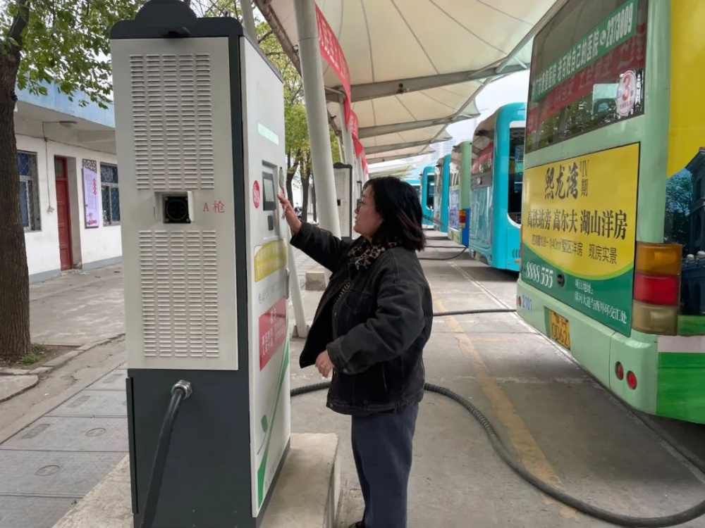 ▲充電人員正在為公交車輛充電