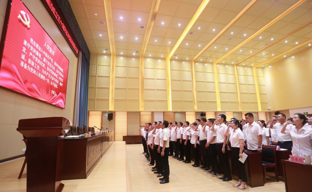 大會(huì)在莊嚴(yán)的國(guó)歌中拉開(kāi)帷幕,全體黨員宣讀入黨誓詞,老黨員為新發(fā)展黨員佩戴黨徽,新發(fā)展黨員代表上臺(tái)發(fā)言。