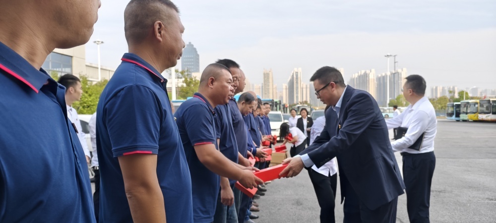 圖/市司法局黨委委員、副局長(zhǎng)周永懷同志向公交集團(tuán)職工贈(zèng)送了“紅雨傘”