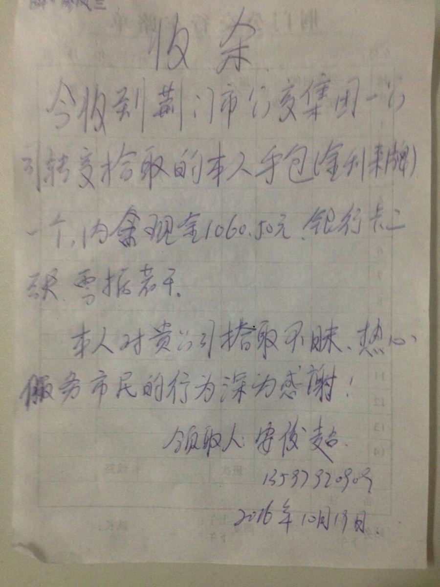 外環(huán)154駕駛員廖鳳蘭車(chē)內(nèi)拾到錢(qián)包一個(gè),交到公司后,失主聯(lián)系核實(shí)后領(lǐng)走。