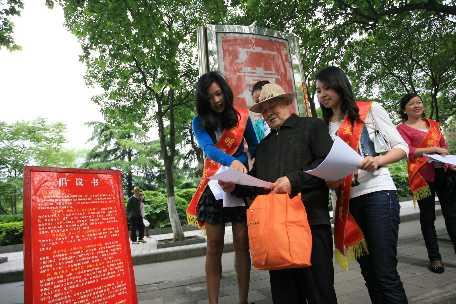 活動(dòng)中,荊門公交集團(tuán)10名佩戴“文明乘車志愿者”綬帶的引導(dǎo)員,以城區(qū)的5個(gè)乘客流量大的公交站點(diǎn)為重點(diǎn),沒(méi)崗定2名志愿者,3名管理人員,通過(guò)發(fā)放寫有“文明乘車,排隊(duì)上下,維護(hù)良好秩序;尊老愛(ài)幼,助人為樂(lè),傳承中華美德;遵守公德,文明禮貌,愛(ài)護(hù)乘車環(huán)境;遵守道法,加強(qiáng)防范,確保出行安全”四條要求的倡議書,引導(dǎo)市民排隊(duì)、讓座,開(kāi)展維護(hù)、示范、引導(dǎo)、勸阻等志愿服務(wù)工作,維持公交候車乘車秩序,努力形成“有序排隊(duì)、依次上車、尊老愛(ài)幼、文明禮讓”的良好氛圍。