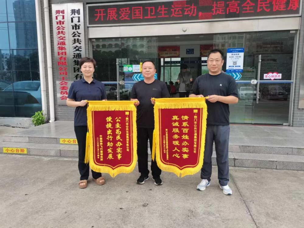 而另一邊,發(fā)現(xiàn)丟了錢包的賀先生在去往武漢的火車上著急萬分,抱著不確定的心態(tài)打電話到客服調(diào)度中心詢問,看能否找回,誰知火車才行至鐘祥站的時候,就接到了電話,說錢包已找到,賀先生頓時放下心來。待賀先生從武漢歸來后特地送來一面錦旗以表示感謝,為公交培養(yǎng)出李學(xué)鋒這樣拾金不昧的駕駛員師傅點贊。
